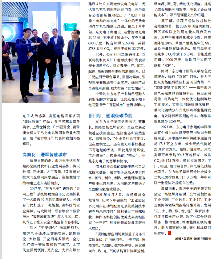 时,南昌县蒋巷三川金属加工厂始终秉承绿色发展理念,践行“双碳”目标,致力于把东方智能科技园打造为国内第一个“零碳智慧工业园区”——基于东方绿色云智慧能源管理平台,通过源网荷储、冷热电气一体化优化控制等数字化技术,实现供用能精细化管控,最大化消纳分布式光伏可再生能源发电,有效降低园区用能成本,年碳排放量减少 2650 吨。